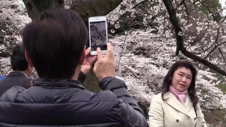 Una semana después de la aparición de los primeros capullos en Tokio, miles de personas salieron a celebrar que el tiempo de "sakura" ha alcanzado su plenitud en la ciudad, trayendo consigo una espectacular estampa de rosa y blanco.